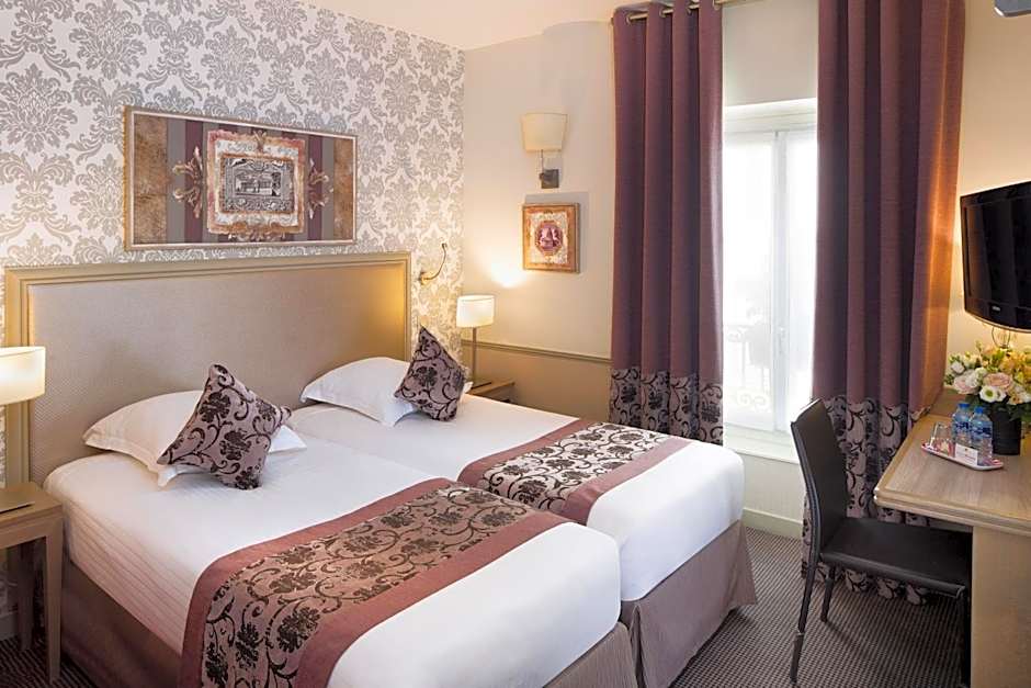 Inside, air conditioning and soundproof rooms promise a peaceful stay, with bathtubs for a soothing soak and free Wifi for easy browsing. The stay features a 24-hour front desk, non-smoking rooms, elevator access, a terrace, and a sun deck to soak up the Parisian vibes. Parking is available for an extra charge, and shuttle services, including airport transfers, are offered for an additional fee. An on-site bar adds a relaxed corner to mingle after a day of exploring.